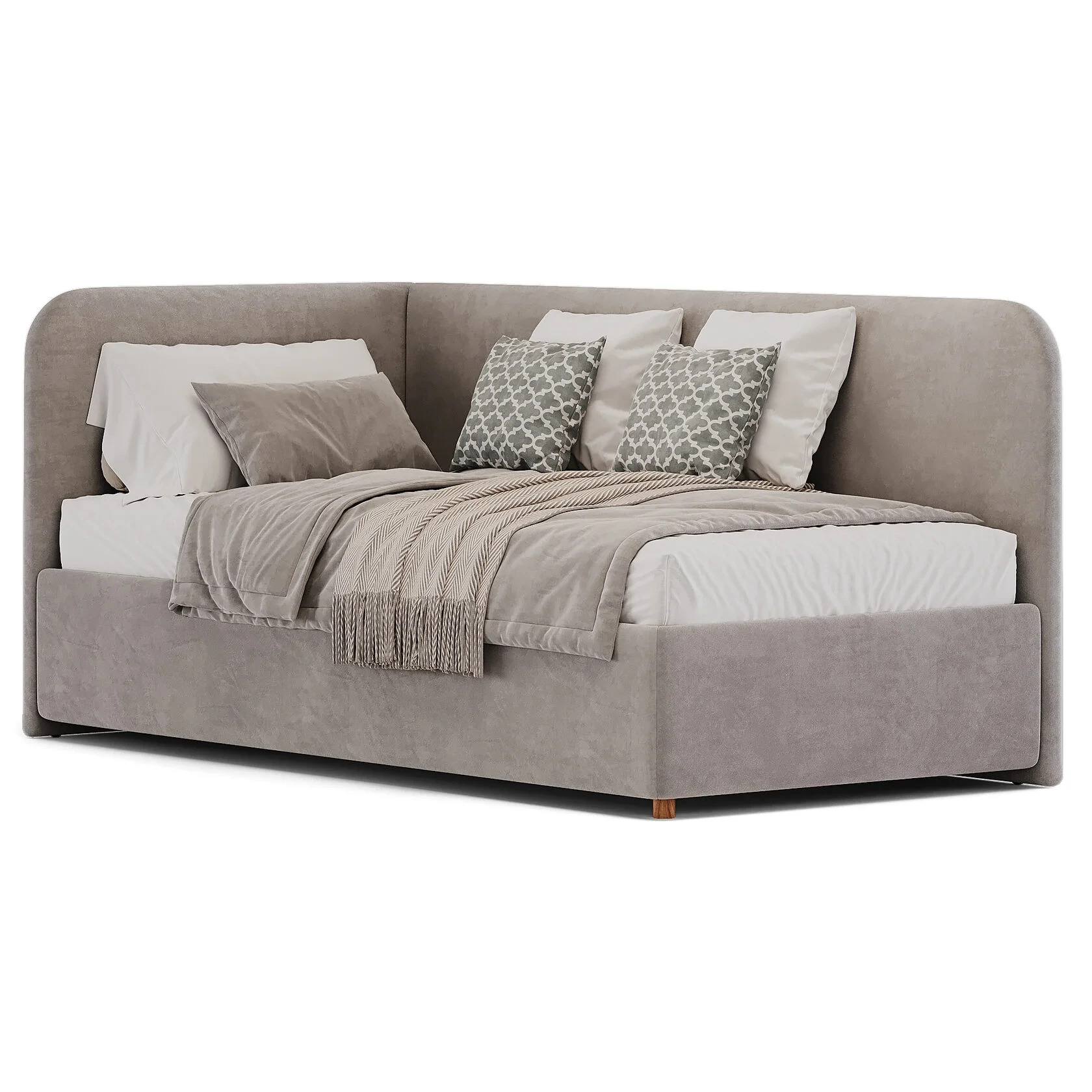 Кровать «Round» выделяется плавными закруглёнными формами и лаконичным силуэтом. Мягкое обитое изголовье и обрамление создают ощущение уюта, а прочный каркас и низкие ножки из натурального дерева обеспечивают надёжность и визуальную лёгкость.